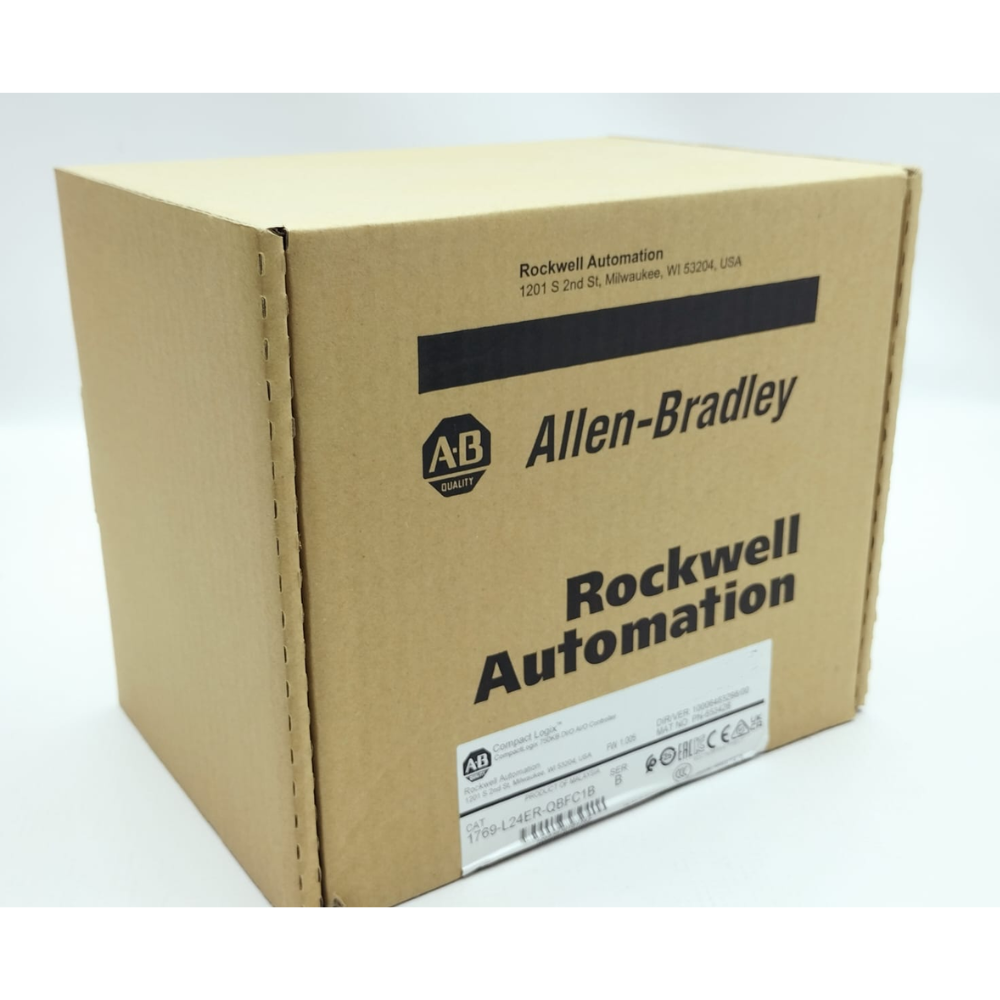 Módulo de procesador Ethernet Allen-Bradley 1769-L24ER-QBFC1B CompactLogix 5370 L2, 2 puertos EtherNet/IP con capacidad de anillo a nivel de dispositivo, memoria de 750 KB, 1 puerto de programación/descarga USB, (16) entradas digitales de 24 V CC, (16) salidas digitales de 24 V CC, 4 entradas analógicas universales (voltaje / corriente), 2 salidas analógicas (voltaje / corriente), 4 contadores de alta velocidad, hasta 4 módulos de expansión de E/S 1769, 8 conexiones Ethernet / IP y 120 TCP, fuente de alimentación de 24V DC, con tarjeta SD de 1GB, puede admitir tarjetas SD de hasta 2GB, Serie B